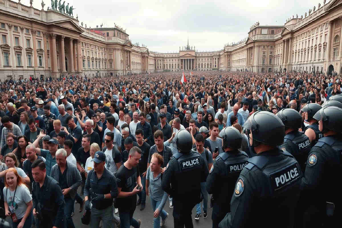 Piazza della Repubblica si è trasformata in un mare umano, denso e in movimento, nel pomeriggio del 2024. Migliaia di persone si sono radunate con un impulso improvviso, come una corrente che non si può fermare. La quiete del primo momento è svanita sotto il peso di un’energia viva, fatta di passi lenti ma decisi. Le forze dell’ordine, schierate in assetto massiccio, hanno disegnato un confine tra ordine e tensione, mentre la piazza diventava teatro di un confronto carico di attese e speranze.